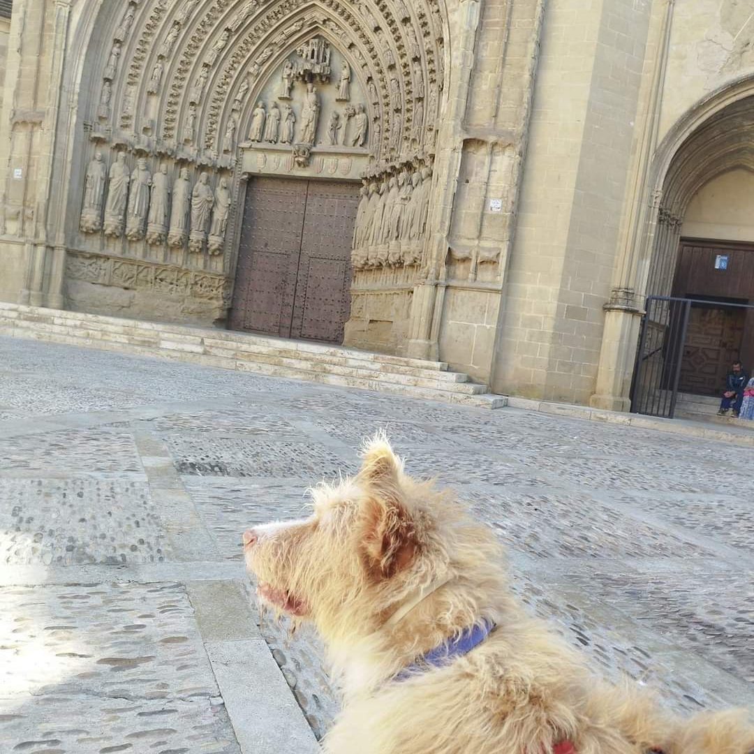 Un trato cercano que garantiza una experiencia única y adaptada a los intereses de cada visitante. SOMOS PET FRIENDLY. Astor busca a San Lorenzo en la portada de la Catedral de Huesca.